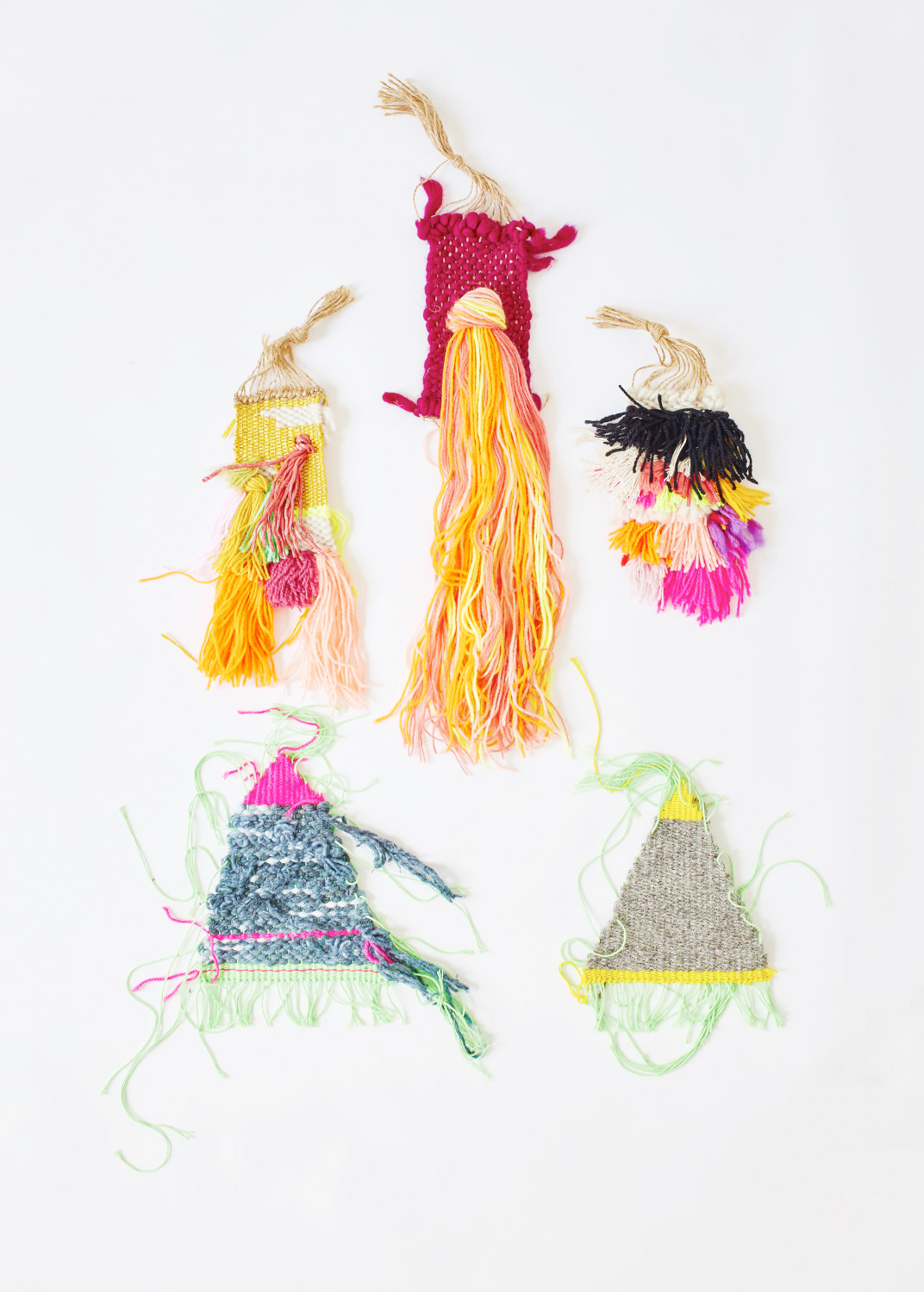 Tapestry weave with hand dyed cotton,wool,felt and latex.